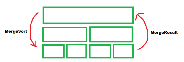 MergeSort로 위에서 밑으로 분할하고 MergeResult로 결합하면서 다시 한단계씩 위로 올라간다.