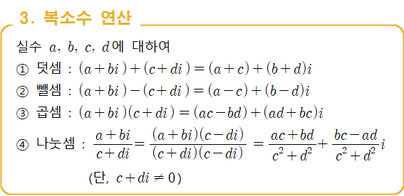 복소수는 제곱해서 -1이 되는 허수이며 a + bi로 실수부(a) , 허수부(bi)로 표현할 수 있다.
