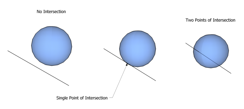 1. 충돌하지 않거나, 2. 선이 구의 가장자리에 닿아 한 점에만 접하거나, 3. 선이 구를 관통해 두 점과 겹치는 경우이다.