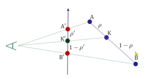 2차원에서 무게중심 좌표계를 사용하기 때문이다. 직교 투영을 제외했을 때 p와 p'가 다르기 때문에