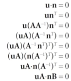 식의 유도 과정이다. dot(u,n)에서 n을 전치행렬로 바꾸면 u와 n이 (1*3)행렬과 (3*1)행렬의 형태가 된다.