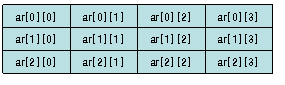 그래서 다차원 배열을 c에서는 위와 같이 구현한다.