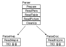 한글과 워드는 차이점이 있지만 ReadTable, ReadPicture 같이 공통적으로 갖고 있는 기능을 모두 순수 가상 함수로