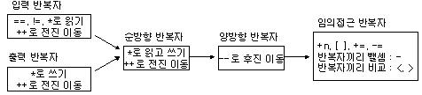 반복자는 컨테이너의 한 지점을 가리키는 객체이다. 반복자를 이용하면 알고리즘의 내부 코드에서 어떤 컨테이너이든지 상관없이 컨테이너의 요소에 접근할 수 있다. 반복자는 기능 별로 종류가 있다.